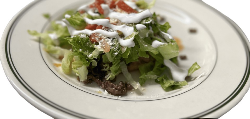 Fried flour tortilla shell, beans, lettuce, choice of meat, jack cheese, onions. cilantro, tomatoes, and avocado. Choice of ranch or House dressing.